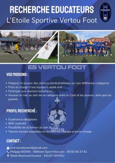 Poste basé à Vay et Marsac – club de 300 licenciés situé dans le Nord 44 poursuit sa structuration pour un projet sportif sur plusieurs saisons et recherche son éducateur, diplômé ou souhaitant passer les formations avec le club.