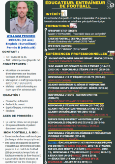 Je suis éducateur sportif et je viens récemment de m’installer sur Nantes. J’exerce en tant qu’entraîneur depuis environ 9 ans et je suis titulaire du CFI Senior. Passionné par le football et la transmission, je souhaite aujourd’hui rejoindre un club afin de mettre mon expérience, mes compétences et mon sérieux au service d’un nouveau projet sportif. Je reste disponible pour échanger et vous rencontrer si mon profil peut correspondre à vos besoins.