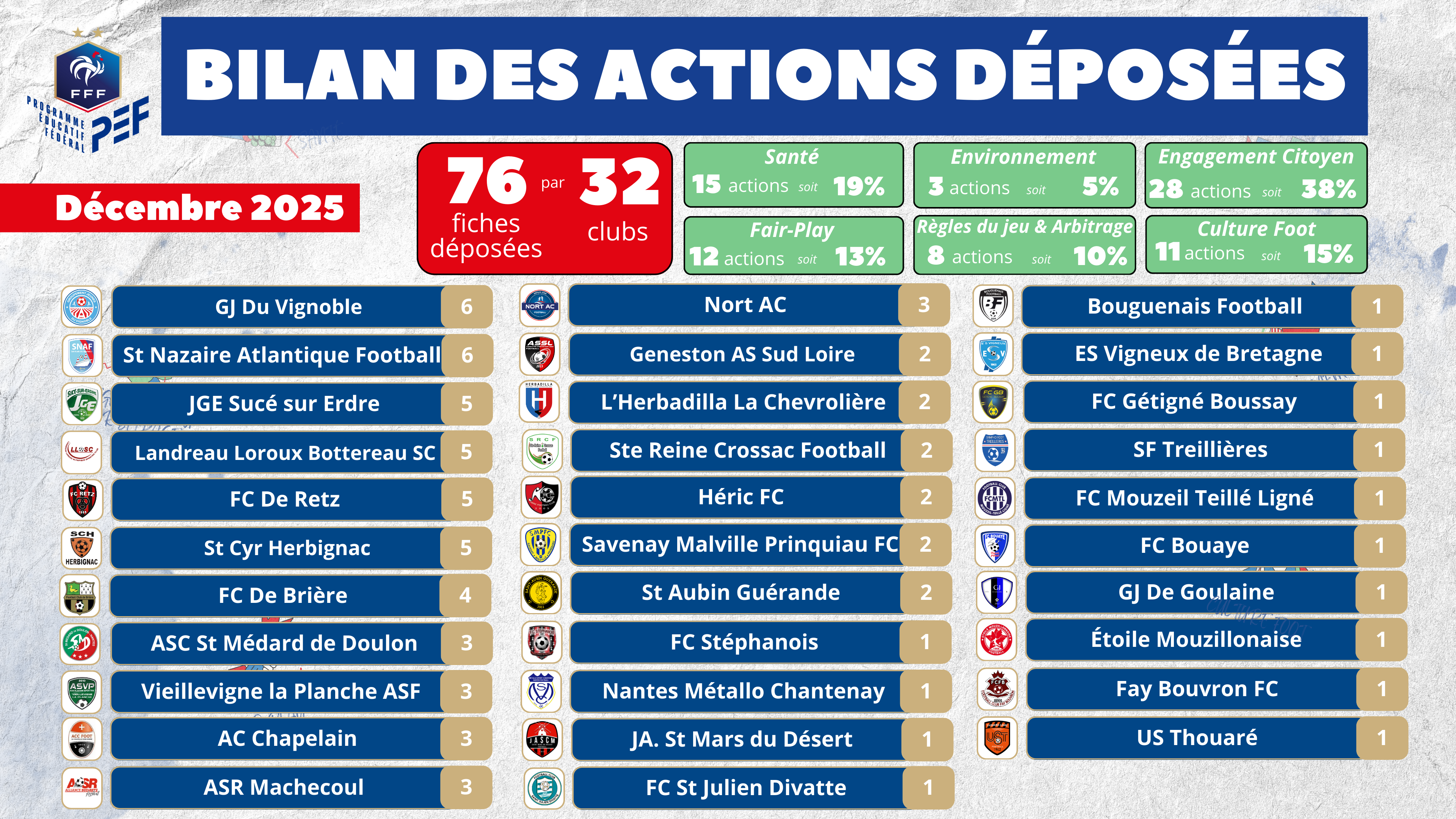 Merci à l’ensemble des clubs d’avoir été impliqués et actifs durant ce mois de décembre.