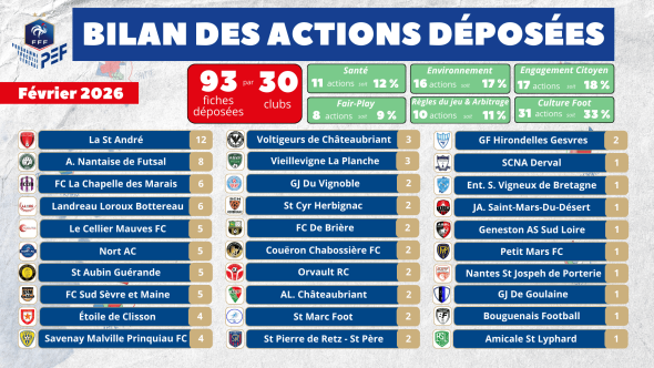 Merci à l’ensemble des clubs d’avoir été impliqués et actifs durant ce mois de février.