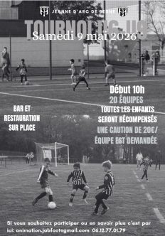 La Jeanne d’Arc de Besné Foot organise un tournoi U7/U9 le samedi 9 mai. Si vous êtes intéressé, veuillez nous contacter par mail.