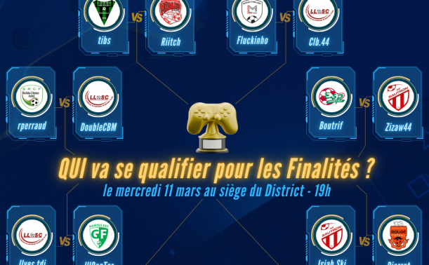 Les Finalités du mercredi 12 février au District 44 Mercredi 12 février à 19h30 avait lieu la Finale Départementale de la eCoupe de France, au District de Football de Loire-Atlantique....